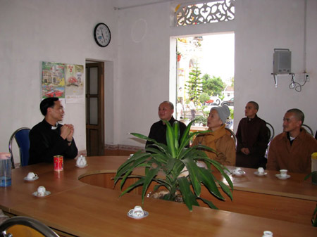 Linh mục phê rô Bùi Trọng Khẩn và giáo dân đã đón tiếp đoàn chùa Phật Quang – BRVT thật trang trọng, đầm ấm. Qua việc trao đổi giáo lý, hai bên đã hiểu nhau hơn, biết nhiều hơn về những nét đặc thù của tôn giáo bạn. Từ đó tìm thấy có những điểm chung đồng để thương yêu nhau như anh em một nhà.