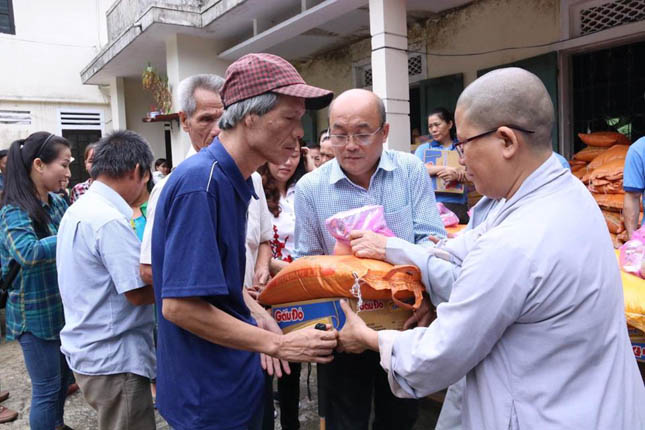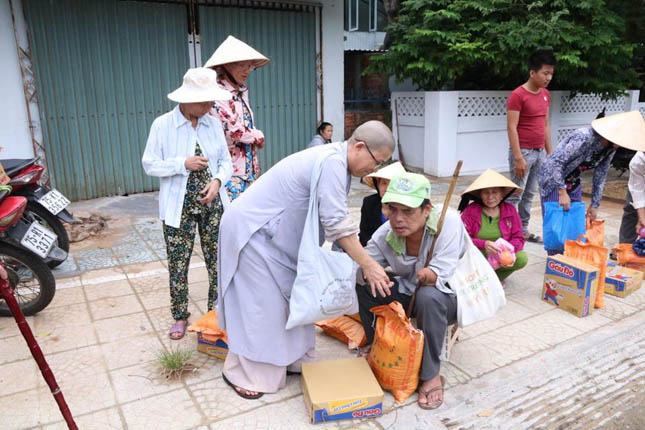 Trước đó, từ buổi sáng sớm ngày 26/8, Ni trưởng Thích Nữ Hạnh Tâm, SC. Thích Nữ Minh Hiền cùng đạo hữu Phật tử đã đến thăm và trao tặng 220 suất quà cho Hội người mù huyện Phú Lộc, tỉnh Thừa Thiên Huế.