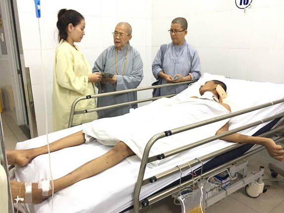 Dù mệt nhọc sau một ngày thực hiện liên tiếp 2 chuyến công tác từ thiện tại Thừa Thiên Huế và Đà Nẵng, nhưng khi nghe hoàn cảnh của cháu Nông Văn Hậu, với tấm lòng Từ bi của những người con Phật, Ni trưởng đã lập tức vận động đạo hữu Phật tử và lên đường ngay trong đêm để kịp hỗ trợ đưa cháu Hậu về quê.