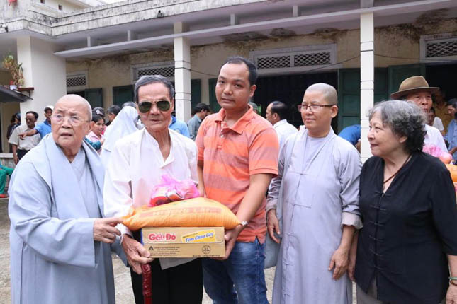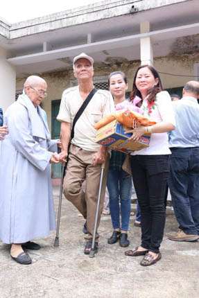 Trước đó, từ buổi sáng sớm ngày 26/8, Ni trưởng Thích Nữ Hạnh Tâm, SC. Thích Nữ Minh Hiền cùng đạo hữu Phật tử đã đến thăm và trao tặng 220 suất quà cho Hội người mù huyện Phú Lộc, tỉnh Thừa Thiên Huế.