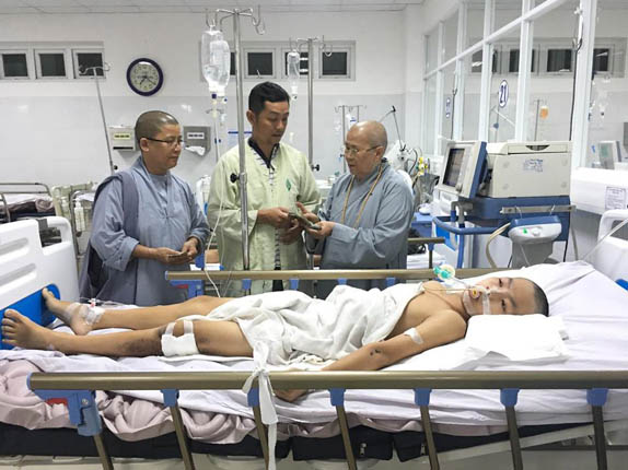Dù mệt nhọc sau một ngày thực hiện liên tiếp 2 chuyến công tác từ thiện tại Thừa Thiên Huế và Đà Nẵng, nhưng khi nghe hoàn cảnh của cháu Nông Văn Hậu, với tấm lòng Từ bi của những người con Phật, Ni trưởng đã lập tức vận động đạo hữu Phật tử và lên đường ngay trong đêm để kịp hỗ trợ đưa cháu Hậu về quê.