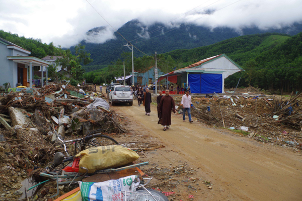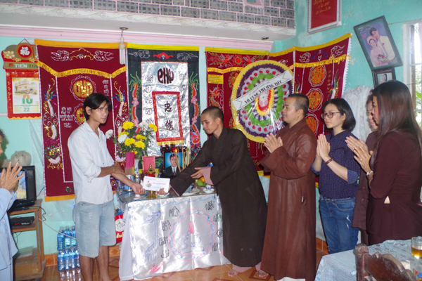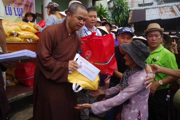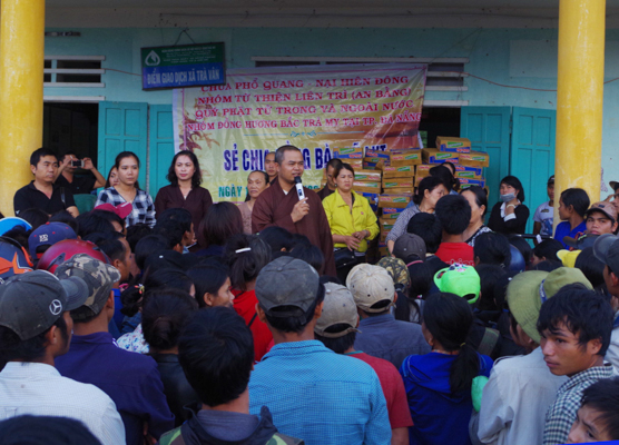Cũng trong dịp lễ này Đại Đức Thích Huệ Trí cùng đạo hữu Phật tử trong và ngoài nước đã thăm các gia đình có thân nhân bị mất và phát 600 phần quà trị giá gần 300 triệu đồng cho đồng bào lũ lụt tại Huyện Bắc Trà My và Nam Trà My thuộc Tỉnh Quang Nam. Những món quà này tuy giá trị vật chất không lớn nhưng góp phần sưởi ấm tấm lòng người dân miền Trung, thể hiện tinh thần và hạnh nguyện cứu khổ ban vui của Đức phật Dược Sư Lưu Ly Quang Như Lai.