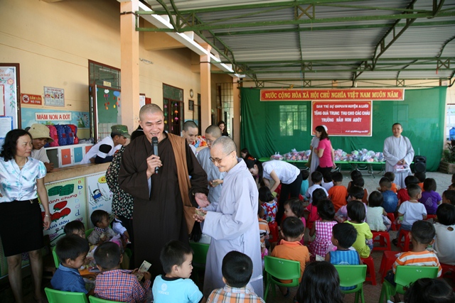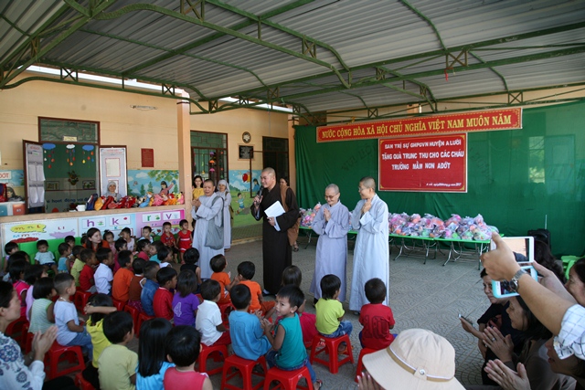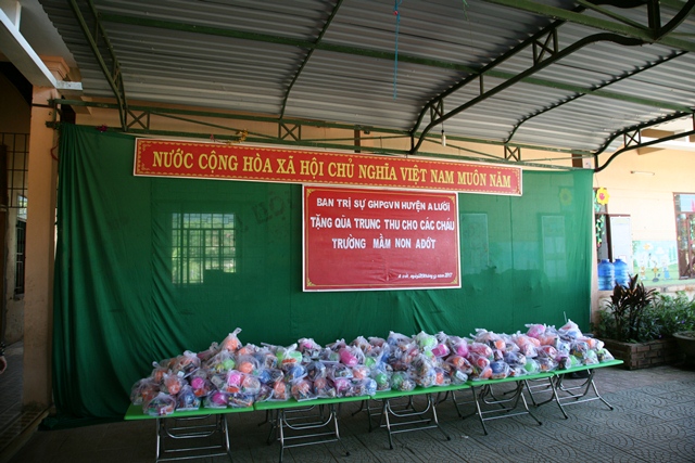 Chư Tôn đức Ni và quý Phật tử đã dành nhiều thời gian quý báu, vượt cả ngàn cây số để về thăm và tặng quà trung thu, từ thiện tại huyện vùng sâu vùng xa A Lưới với số tịnh tài, tịnh vật tổng trị giá hơn 110.000.000đ tại trường mầm non A Đớt (186 phần), trường Tiểu học A Đớt (214 phần), nhà sinh hoạt cộng đồng thôn A Tin xã A Đớt (300 phần), nhằm chia sẻ nổi khó khăn vất vả với đồng bào vùng cao chịu ảnh hưởng của cơn bão số 10 vừa qua.