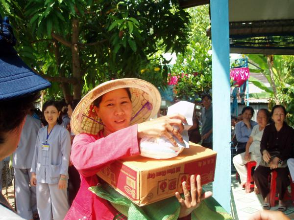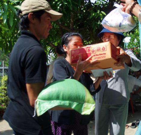 Nhìn bà con chơn chất, đặc biệt là những cụ già lớn tuổi đến nhận quà bày tỏ niềm vui và lòng biết ơn, làm cho mọi người trong đoàn như quên đi những mệt nhọc khi vượt chặng đường xa đến nơi đây. Mọi người cảm thấy ấm lòng hơn và lớn mạnh hơn trong tình yêu thương nối kết với nhau.