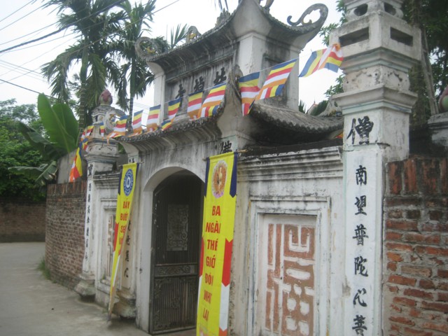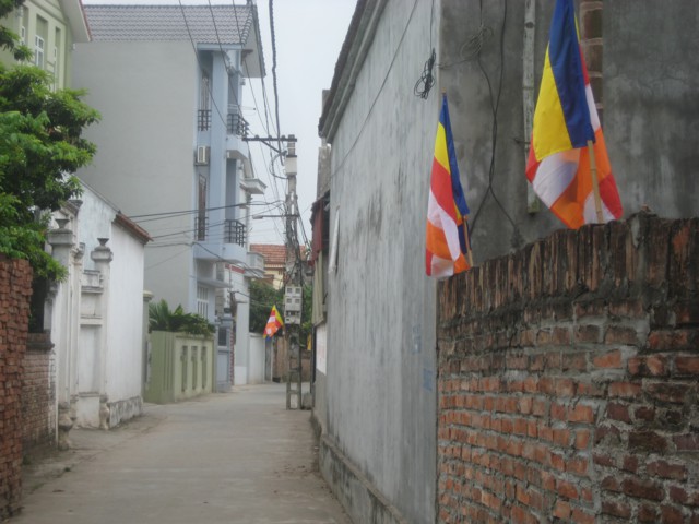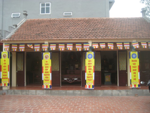 Lần đầu tiên, nhà chùa được trang hoàng lỗng lẫy với băng rôn, câu đối. Cờ Phật giáo không chỉ được treo rực rỡ trong chùa mà còn được treo ở khắp các đường trong làng dẫn vào chùa đã tạo một không khí Phật đản tươi vui.