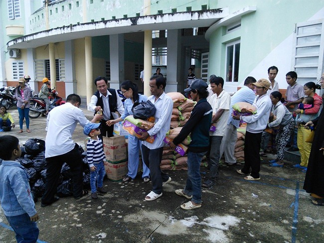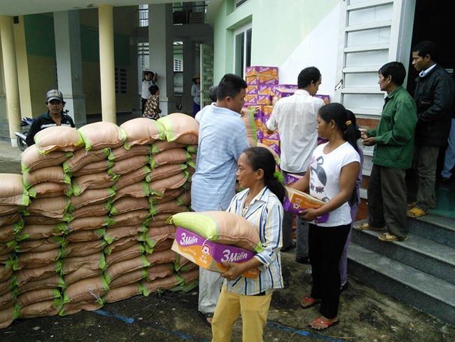 Trong đó gần 70% là người dân tộc thiểu số. Mỗi phần quà gồm 10 kg gạo, 1 thùng mì ăn liền, 1 lít dầu chiên, quần áo và 1 lóc sửa cho trẻ em.