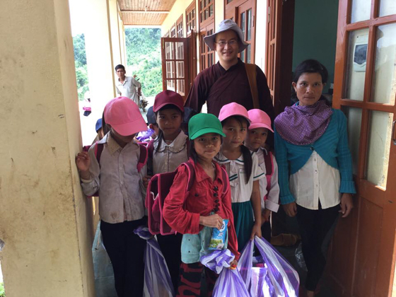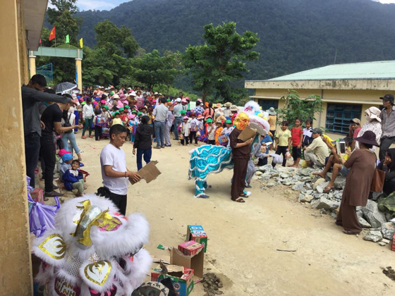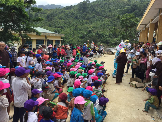 Ngoài ra đoàn đã tổ chức Múa Lân, vui chơi, cắt tóc và móng tay cho các cháu nhỏ, những mạnh thường quân tháp tùng theo đoàn cũng đã đem tặng trực tiếp những món quà ý nghĩa cho đồng bào và trẻ em cấp 1 nơi đây… Xã Trà Vinh, huyện Nam Trà My, cách TP Đà Nẵng hơn 200 km, cả đi lẫn về hơn 400km, đường đi quanh co, núi đèo nhưng quý Phật tử trong đoàn dù mỏi mệt nhưng tinh thần lại hân hoan vì đã có một chuyến hành trình thật trọn vẹn ý nghĩa…