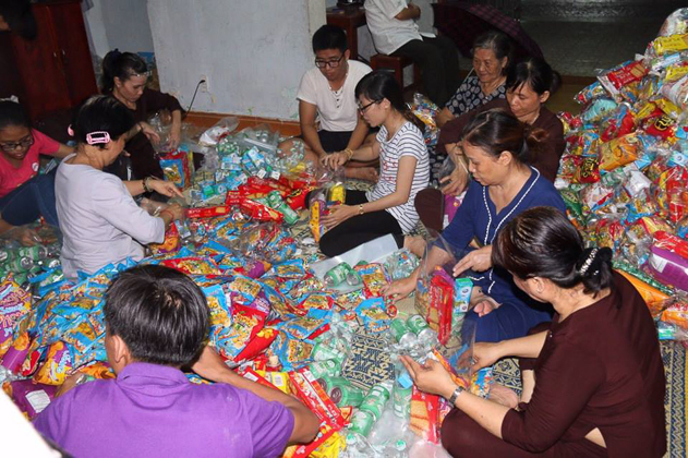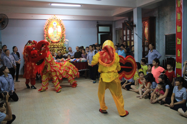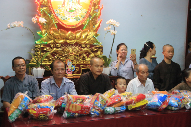 ĐĐ. Thích Đạo Lực – Trưởng ban TTTT GHPGVN Tp Đà Nẵng cùng Ban hộ tự, đạo hữu Phật tử đã tổ chức cho các cháu thiếu nhi tại địa phương xem múa lân và trao tặng 520 phần quà bánh trung thu đến các cháu.