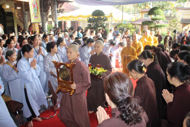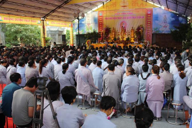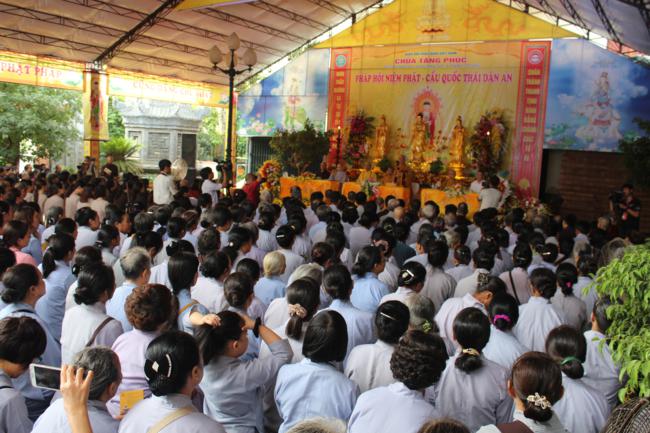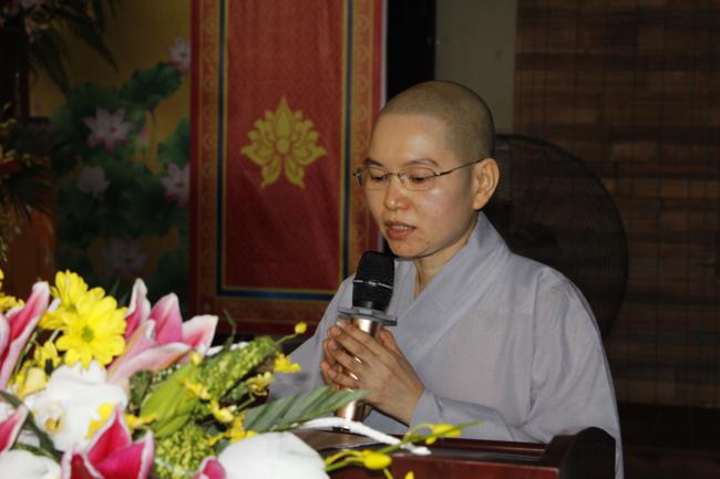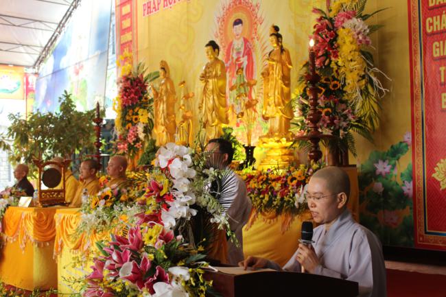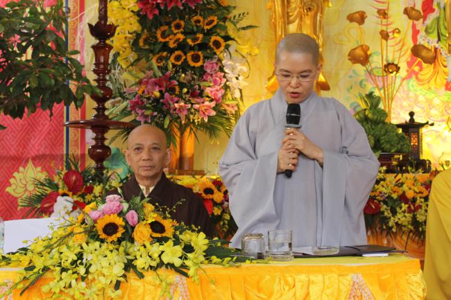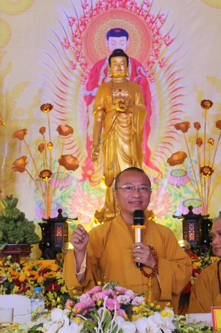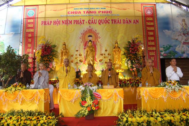 Phát biểu khai mạc tại pháp hội niệm Phật sư cô Thích Đồng Hòa chia sẻ: Đức Phật thị hiện ra đời, chuyển bánh xe pháp mở ra tám vạn bốn ngàn pháp môn cho chúng sinh tùy căn cơ tu tập. Mỗi pháp môn lại có những yếu chỉ và diệu dụng riêng biệt. Song dù pháp môn nào cũng không ngoài mục đích diệt tận vô minh, tìm cầu giải thoát. Tịnh độ là một tông phái chủ trương lập đại nguyện hướng về tây phương cực lạc, nơi có đức Phật A Di Đà là giáo chủ. Một trong những pháp môn của Tịnh Độ là niệm hồng danh đức Phật A Di Đà để tâm thu về một niệm, cốt để loại trừ não phiền, vọng tưởng điên đảo. Người niệm hồng danh lục tự Nam Mô A Di Đà Phật đến lúc nhất tâm bất loạn có thể đạt đến cảnh giới giải thoát nơi tâm và khi thân hoại mạng chung được sinh về cõi Phật.