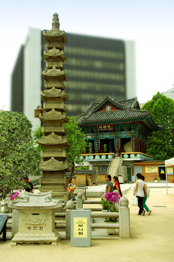 Đặc biệt, bên phải ba pho tượng đức Phật là một pho tượng đức Phật Thích Ca cổ bằng gỗ, được tạc dười thời Chosun (khoảng năm 1460) và được đưa về tôn trí tại chùa năm 1910 khi ngôi chùa mới được xây dựng. Đây là pho tượng rất quý, đã được công nhận Di sản số 126 của thành phố Seoul.