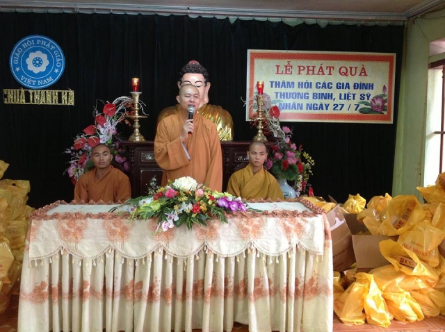 Về phía cán bộ sở tại có Ông: Nguyễn Văn Vinh- bí thư chi bộ phố Hoà Bình 2 cùng đông đảo quý vị Phật tử. Tổng số quà được trao tại buổi lễ là 365 cho các hộ gia đình chính sách thuộc các tổ Phật tử chùa Thanh Hà và các gia đình thương binh, liệt sĩ thuộc các khu phố: Hoà Bình 1, Hoà Bình 2, Lê Hoàn 1.