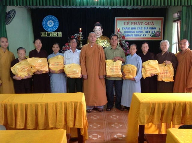 Tại buổi lễ, Đại đức Thích Tâm Đức đã nhấn mạnh việc thăm hỏi các gia đình chính sách có công với nước nhân ngày 27/7 là việc làm thiết thực đã được nhà chùa thực hiện trong nhiều năm qua, dù vật chất không quá quan trọng nhưng về giá trị tinh thần thì vô cùng lớn đó là tấm lòng, là sự quan tâm của quý Thầy. Ông Nguyễn Văn Vinh- Bí thư chi phố Hoà Bình 2 thay mặt các hộ gia đình được nhận quà trong dịp này gửi lời cảm ơn chân thành nhất đến quý Thầy. Bà Nguyễn Thị Nhâm đại diện quý Phật tử chùa Thanh Hà cũng gửi lời cảm niệm sâu sắc đến chư tôn đức Tăng nhất là Đại Đức trụ trì dù bộn bề công tác Phật sự cũng đã về dự và ban đạo từ tại buổi lễ.
