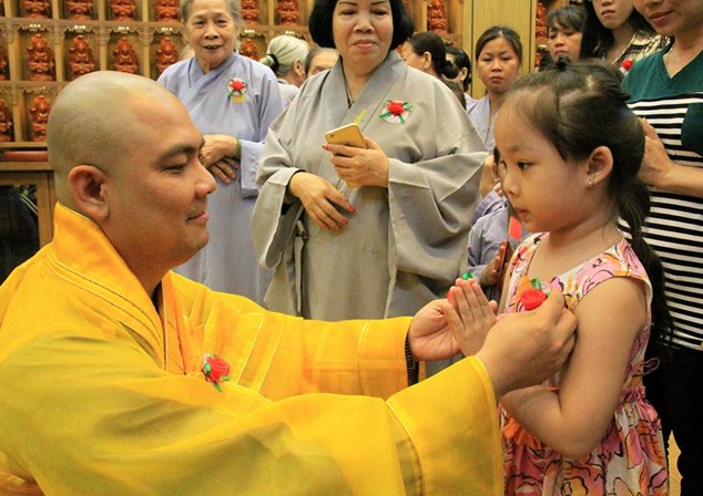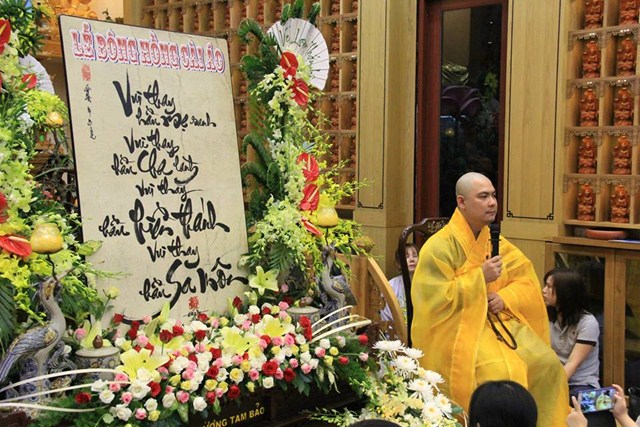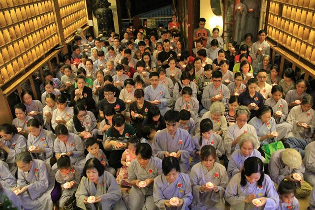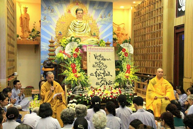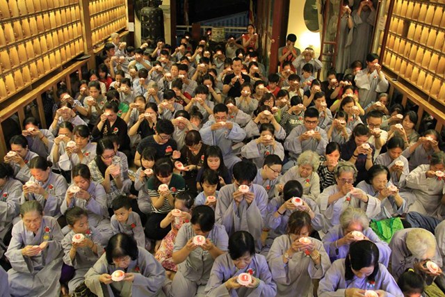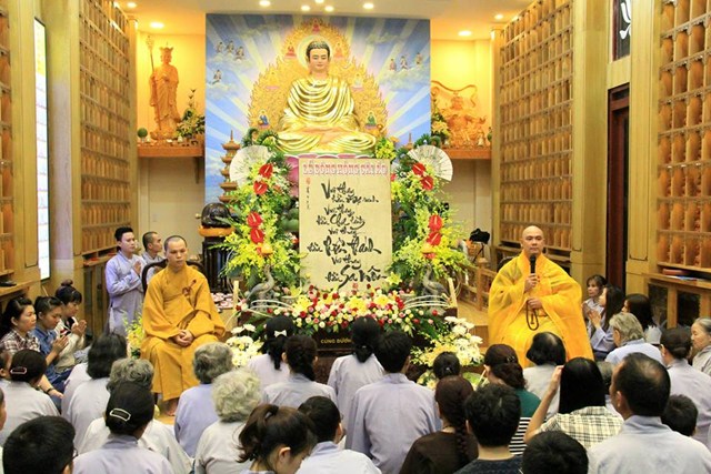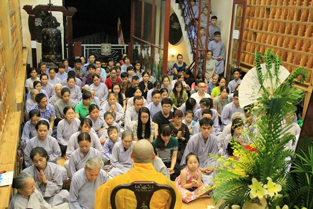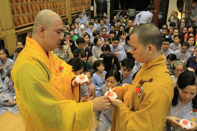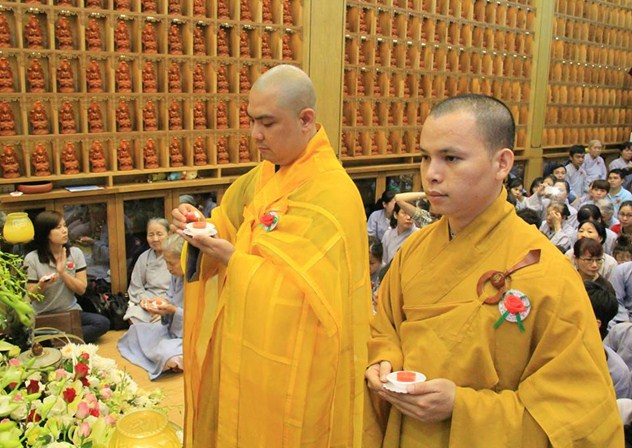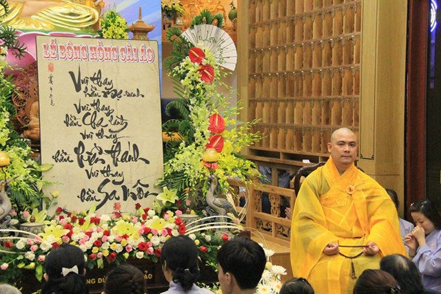Buổi lễ diễn ra có một cách trang nghiêm và thành kính. Mở đầu là bài pháp thoại làm Đại Đức Thích Lệ Minh – Ủy viên Ban Hoằng Pháp Trung Ương GHPGVN thuyết giảng cho chủ đề “MẸ LÀ TIẾNG GỌI CỦA TÌNH THƯƠNG” đã làm cho khoé mắt của đại của đại chúng rơi nhiều giọt lệ khi nghĩ về lối sống và sự báo đáo công ơn cha mẹ của bản mình còn nhiều khiếm khuyết. Kế tiếp là nghi thức cài hoa hồng mùa Vu Lan và Tháp nến cầu nguyện.