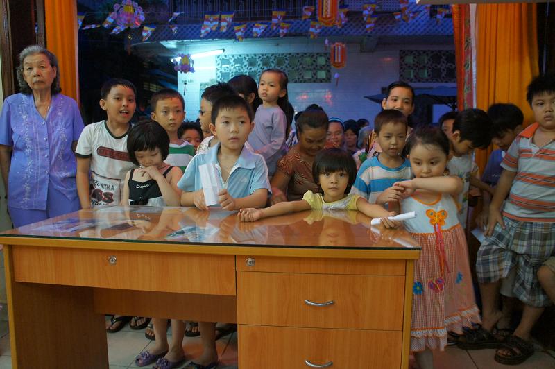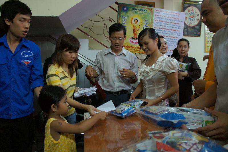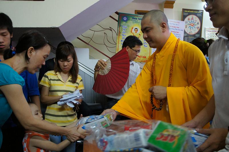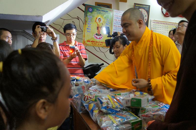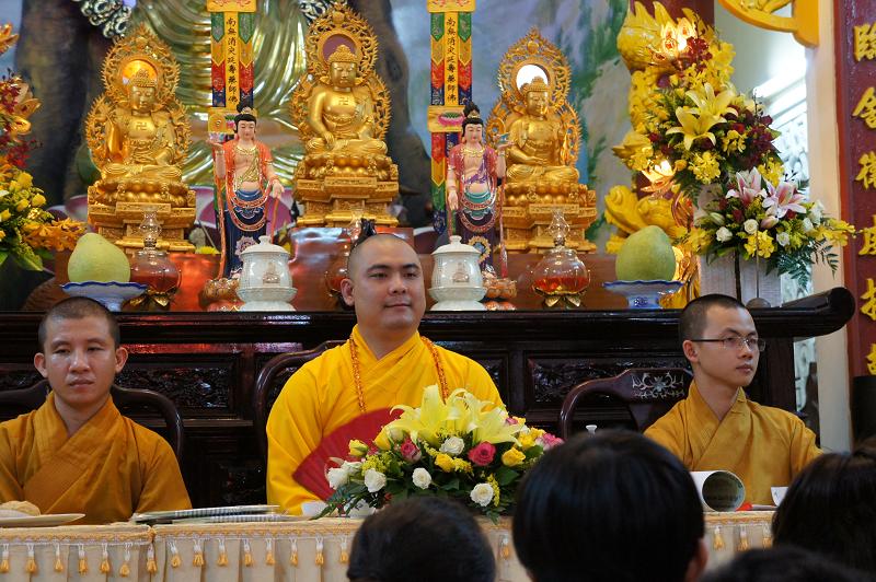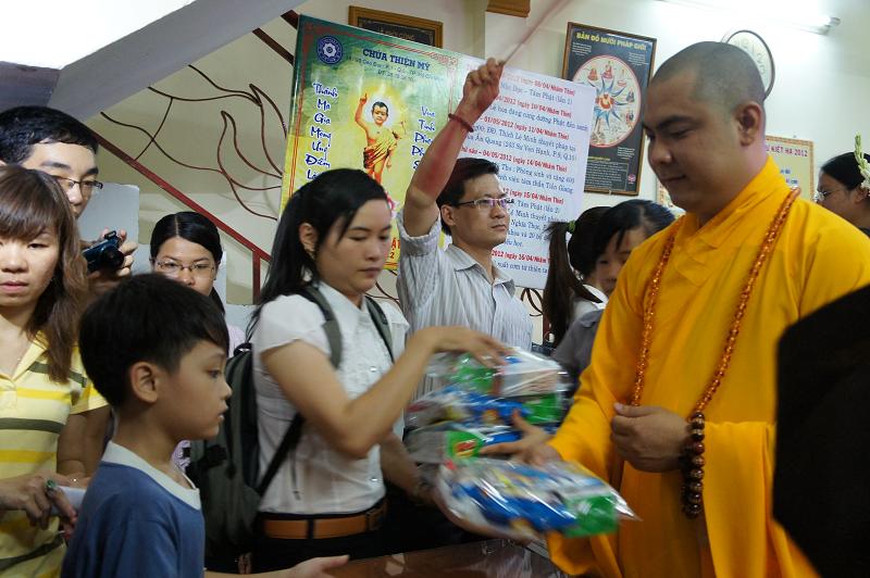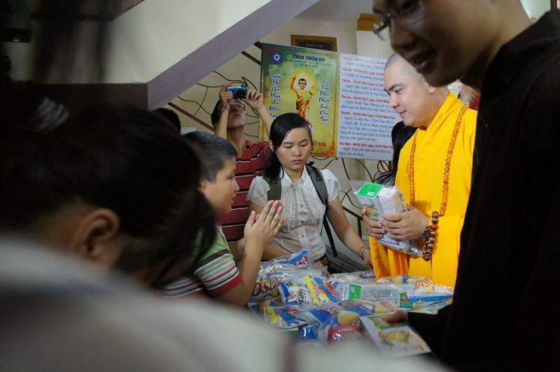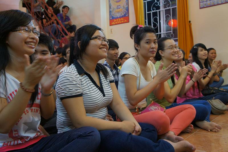 Sau đó tại chánh điện bản tự, gần 100 bạn trẻ thích đi chùa tụng kinh và hoạt từ thiện trên trang mạng xã hội Facebook đã tham dự chương trình “NIỀM VUI TUỔI THƠ  – TÁCH TRÀ HỘI NGỘ”. Buổi lễ dưới sự chứng minh của ĐĐ. Thích Lệ Minh (Phó thường trực BĐD.PGQ5), cùng quý Thầy : Thích Pháp Như, Thích Lệ Bình, Thích Thiện Lạc, Thích Trung Nghiêm, sự góp mặt của ca sĩ Hùng Thanh, Phạm Quang Hiền.