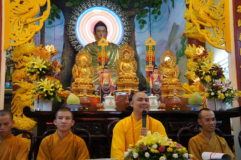 Toàn thể đại chúng đã lắng lòng nghe thời pháp thoại ”BẠN LÀNH TRONG PHẬT PHÁP” do ĐĐ. Thích Lệ Minh phụ trách. Ai cũng nhận thức : kết bạn như núi và như đất (nơi đây là dưỡng chất nuôi lớn sự sống, đất lành chim đậu, vạn vật nương nhau để cùng tồn tại và phát triển).