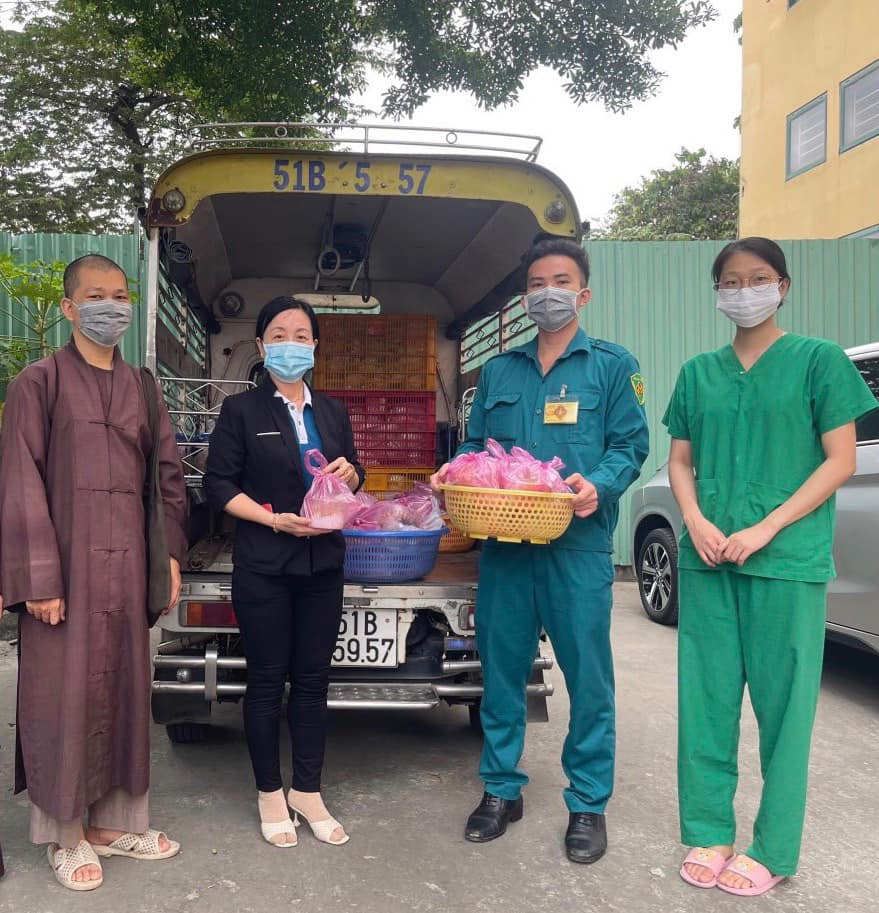 ĐĐ. Thích An Nguyện – Trụ trì chùa Thiền Tôn 2 đã đến thăm bà con ở khu cách ly phường Cát Lái và gửi tặng bà con một số thức phẩm như: trứng, chả chay và một số nhu yếu phẩm khác.