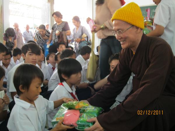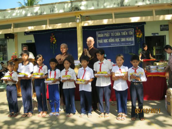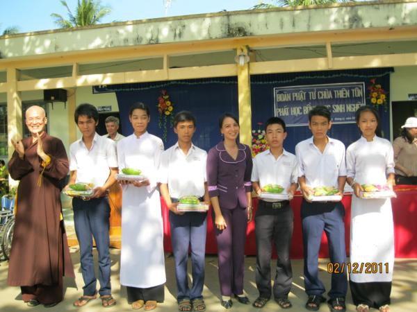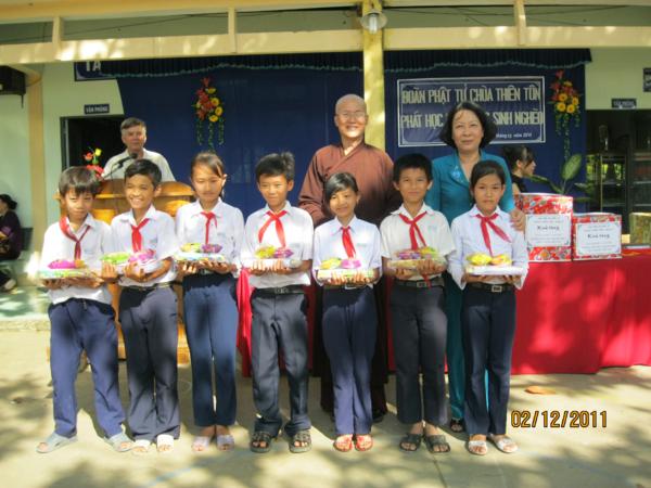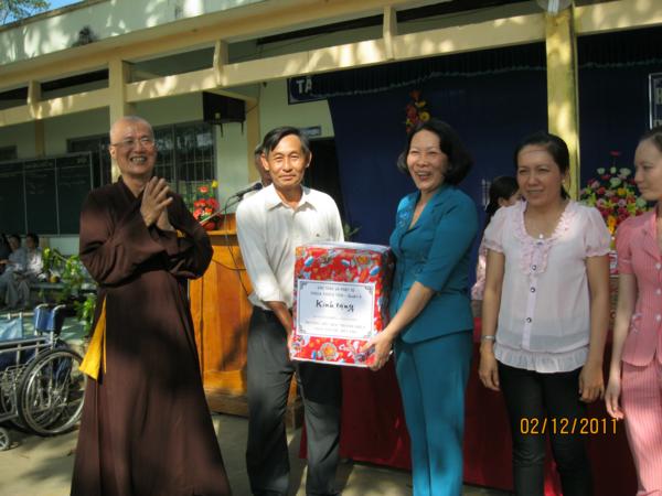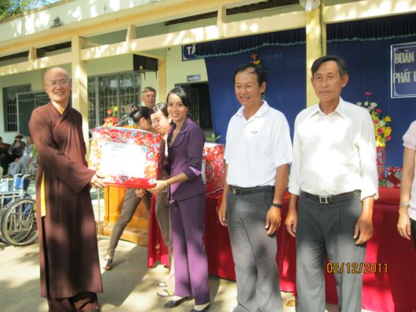 Đoàn đã tặng 54 phần quà cho các bà mẹ VNAH, các vị cán bộ hưu trí và cụ già neo đơn Trung tâm Xã hội tinh, tặng 198 phần quà cho các trẻ em khuyết tật, tặng 18 phần thưởng học sinh xuất sắc toàn khối trường Trung tiểu học Thành Triệu, tặng 87 suất học bổng cho học sinh nghèo, mỗi suất từ 500.000đ đến 700.000đ kèm theo 1 phần quà trị giá 120.000đ. Tổng trị giá gần 100 triệu đồng;