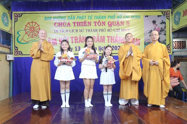 Tham dự và chứng minh buổi lễ hội trăng rằm có sự hiện diện của: HT. Thích Chơn Không – trưởng BHDPT GHPGVN TP.HCM – trụ trì chùa Thiên Tôn – trưởng BTC, cùng Quý Chư Tôn Đức trong BTS GHPG TP.HCM.