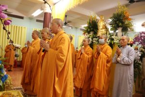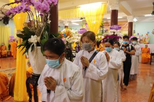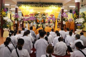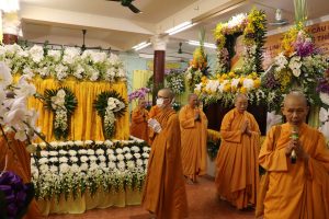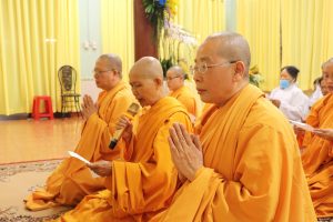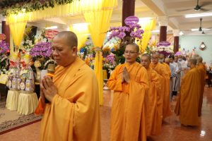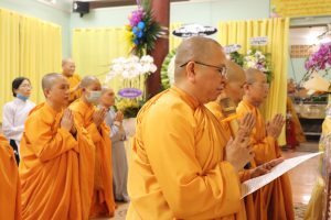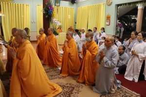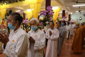 Tiếp theo chương trình NS. Bửu Liên hướng dẫn Ni chúng và Phật tử phúng tụng thời kinh ngắn cúng dường lên giác linh Ni trưởng, cầu nguyện giác linh Ni trưởng Thượng phẩm Thượng sanh Cao đăng Phật quốc.