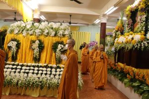 Thương thay! Một đoá hoa đàm vừa rụng, hương thơm bát ngát một vùng, Tiếc thay! Cõi trần gian vắng bóng, bậc sứ giả đại hùng.