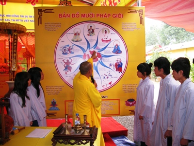 Với các em thì thời lượng bài giảng ngắn để phù hợp với thời gian mà các em có, cách truyền đạt cũng dùng phương pháp trong ngành giáo dục đang áp dụng như vẽ đồ hình “Bản đồ tư duy” để các em dễ nhớ và dễ tiếp cận với giáo lý Phật Pháp.
