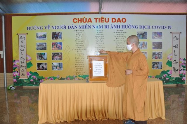 Các chùa, cơ sở tự viện trong vùng tâm dịch mỗi ngày đã làm hàng ngàn suất cơm từ thiện gửi đến đồng bào khó khăn, những người yếu thế trong xã hội, cũng như quan tâm đến các y, bác sĩ, nhân viên y tế, lực lượng vũ trang, các tình nguyện viên nơi tuyến đầu chống dịch…