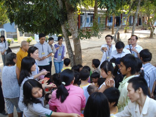 Tại chùa Diệu Pháp ( mái ấm tình thương nuôi trẻ mồ côi và người gia neo đơn )