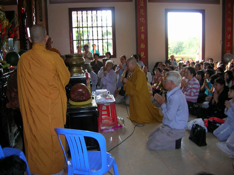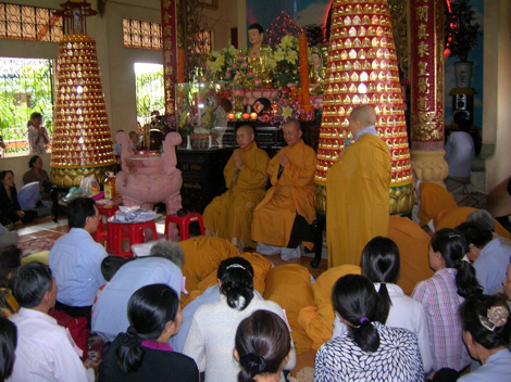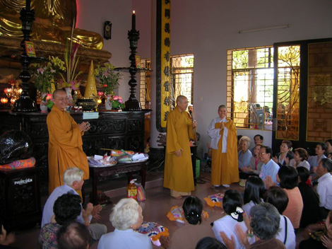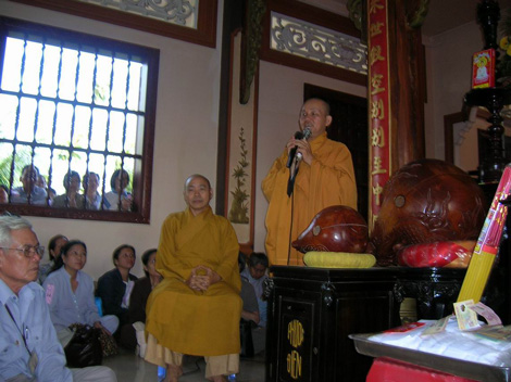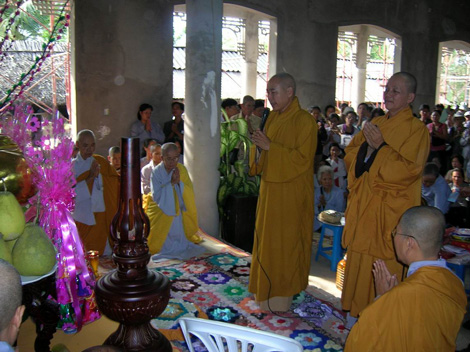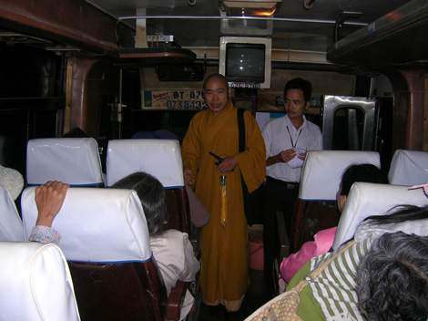Cùng đi với đoàn có TT. Thích Minh Thiện – Phó ban thường trực BTS THPG Long An. Hơn 1 ngàn Phật tử với 23 chiếc xe loại 50 chổ đã tạo cho chuyến đi đầu năm mới vô cùng phấn khởi và náo nhiệt mỗi khi đoàn tới các ngôi chùa.