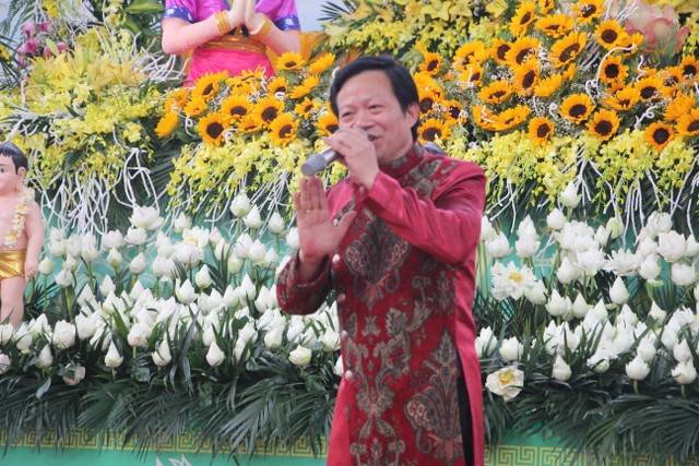 Sau các nghi lễ niệm Phật cầu gia bị, chào cờ, đạo ca, nhập từ bi quán, các bạn thanh niên Phật tử đã dâng hoa cúng dàng Đại lễ. TT.Thích Thanh Hòa thay mặt cho chư tôn đức tuyên đọc “Thông điệp của Đức Pháp chủ HĐCM GHPGVN gửi Tăng, Ni, cư sĩ Phật tử Việt Nam nhân dịp Đại lễ Phật đản PL.2562 – DL.2018”. Thông điệp nhắn gửi: “Kỷ niệm ngày Đức Phật đản sinh, ngược dòng lịch sử tự hào về sự đóng góp vĩ đại của các bậc Tổ sư đại trí cho dân tộc, Tăng Ni, Phật tử, tổ chức thành viên Giáo hội Phật giáo Việt Nam phải nâng cao tinh thần: “Trí tuệ – Kỷ cương – Hội nhập – Phát triển”, nỗ lực không ngừng làm cho Đạo Phật xương minh, tiếp tục đóng vai trò quan trọng trong khối đại đoàn kết dân tộc, tích cực trong sự nghiệp xây dựng và bảo vệ Tổ quốc Việt Nam, góp phần đem lại cuộc sống an lạc, thịnh vượng cho nhân dân, hòa bình cho nhân loại.”. Dịp này, chư tôn đức chứng minh, quý quan khách, đại diện Phật tử đã tặng hoa chúc mừng BTS PG huyện nhân dịp Đại lễ Phật đản. Chương trình Đại lễ còn một số tiết mục văn nghệ có sự tham gia của các ca sỹ, nghệ sỹ: Văn Tuấn – Hằng Nga, Đàm Thu Thủy, Thế Duyên, Quang Huy, bé Tú Thanh…
