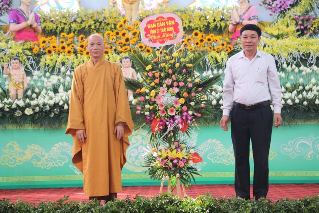 Đến dự buổi lễ còn có: ông Nguyễn Văn Huy, Phó Chánh Văn phòng Tỉnh ủy; ông Tạ Ngọc Giáo, Giám đốc sở Tài chính; ông Trần Quang Minh, Phó ban Dân vận Tỉnh ủy; ông Nguyễn Quang Minh, Trưởng ban Tôn giáo tỉnh; ông Đỗ Đắc Tuyn, Trưởng phòng PA88, (Công an tỉnh); ông Nguyễn Văn Ánh, Phó trưởng Công an TP.Thái Bình, P.Hoàng Diệu cùng đại diện Đảng ủy, HĐND, UBND, UBMTTQVN P.Hoàng Diệu, tổ dân phố số 23, 26 (P.Hoàng Diệu). Ông Phan Văn Thưởng, Phó Chủ tịch UBMTTQVN tỉnh gửi hoa chúc mừng.