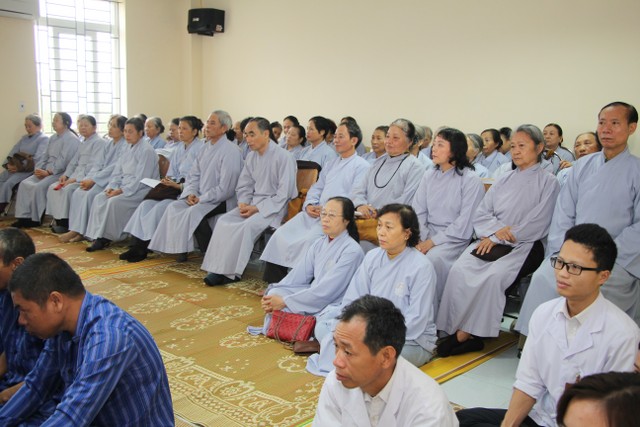 Chư tôn đức đã chia sẻ phương pháp để giúp các bệnh nhân chữa trị thân bệnh và tâm bệnh: bỏ các thói quen ăn uống ảnh hưởng xấu đến sức khỏe, sống an vui trong hiện tại, niệm danh hiệu Phật và Bồ tát… Qúy Thầy cùng chư Tăng đã đến từng Khoa để phát từng xuất ăn cho các bệnh nhân và họ cách niệm Phật.