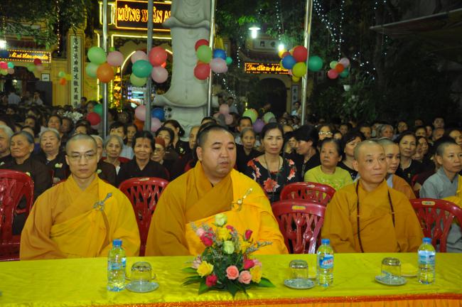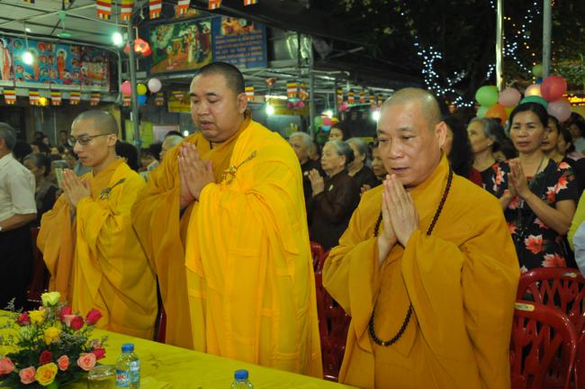 Chứng minh buổi lễ có: Hòa thượng Thích Bảo Nghiêm – Phó chủ tịch HĐTS kiêm Trưởng Ban hoằng pháp TW GHPGVN, Trưởng BTS GHPGVN thành phố Hà Nội; Đại đức Thích Nguyên Thanh – Trưởng BTS GHPGVN quận Hoàng Mai cùng chư tôn Đức Tăng Ni trụ trì các chùa, tự viện trong địa bàn quận.