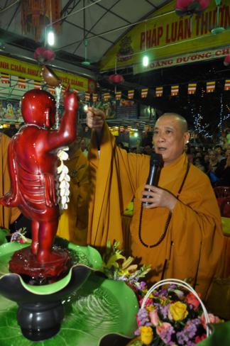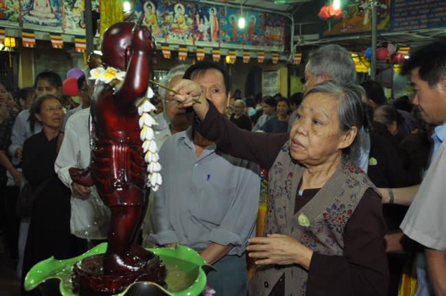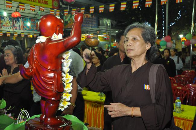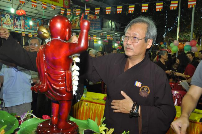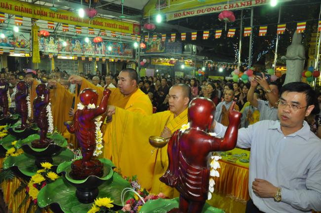 Cuối cùng, chư tôn đức và toàn thể đại chúng đã thực hiện nghi thức Phật đản truyền thống: niêm hương bạch Phật, tụng kinh Phật Đản và làm lễ tắm tôn tượng Đức Bản Sư trong tiếng niệm Phật đầy thành kính của những người con Phật.