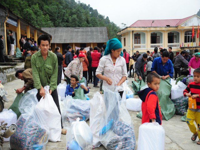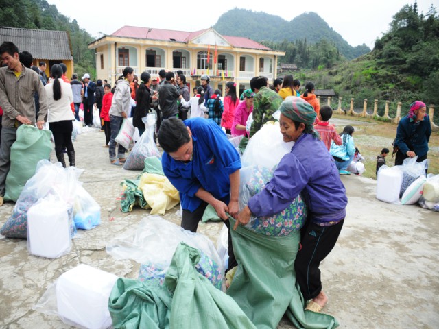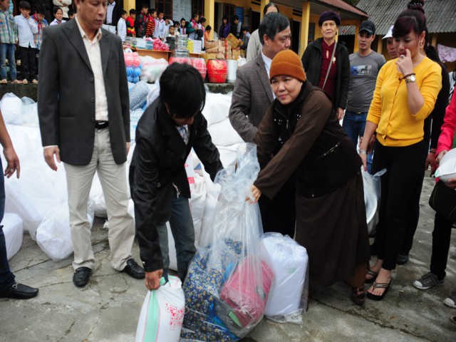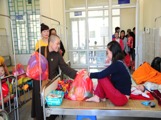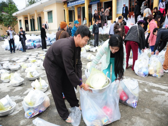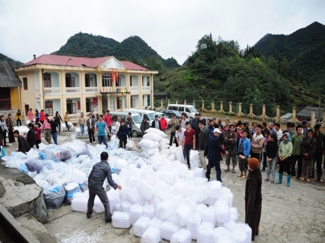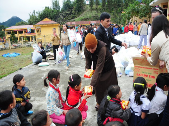 Tại buổi phát quà, Chư tôn đức Ni đã cùng các Phật tử trao 100 phần quà cho 100 hộ dân đồng bào dân tộc thiểu số thuộc xã Cao Mã Pờ, huyện Quản Bạ, tỉnh Hà Giang. Mỗi phần quà trị giá gần 800 ngàn đồng bao gồm: gạo, muối, chăn, quần áo, màn, bột canh, đường, muối, nước mắm, cá can nhựa, cặp lồng, khăn mặt, mảnh áo mưa, bạt che mưa nắng, xoong nồi và các nhu yếu phẩm thiết yếu khác…