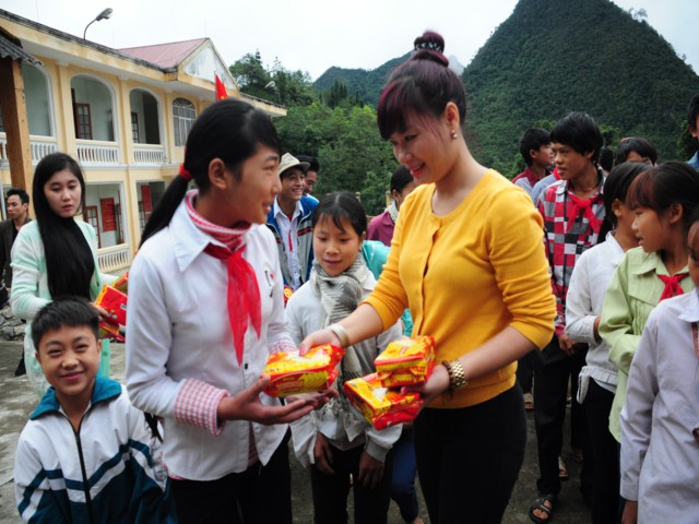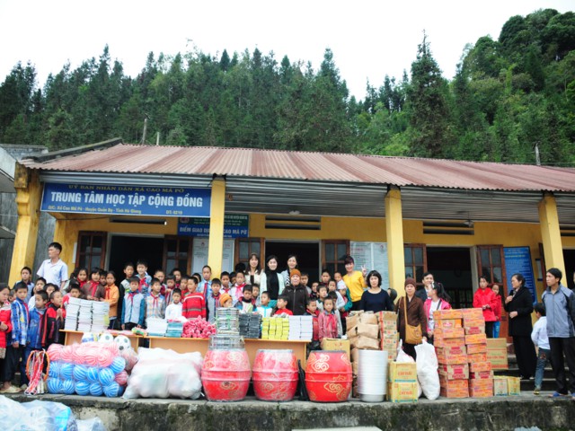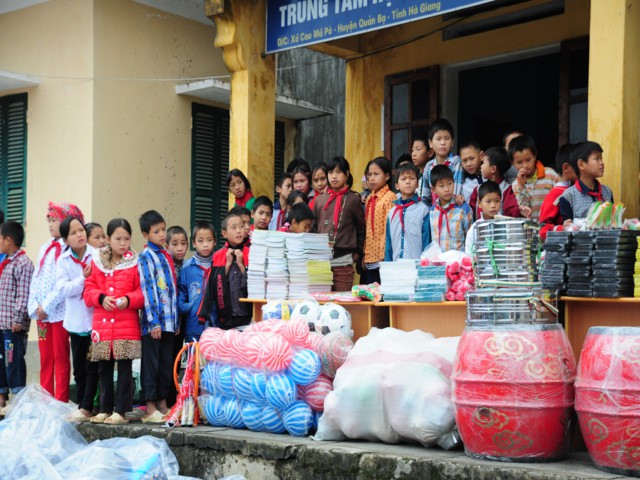Nhân dịp này, Chư tôn đức Ni trong chốn trụ xứ chùa Vẽ và các Phật tử đã trao quà cho 3 trường: trường mẫu giáo, trường tiểu học và trung học cơ sở bán trú thuộc xã Cao Mã Pờ, huyện Quản Bạ với các thiết bị trường học như: trống trường, trống đội, cờ, huy hiệu đoàn, huy hiệu đội, đồ chơi trí tuệ, sách vở, đồ dùng học tập… cùng các nhu yếu phẩm như: gạo, chăn, màn, xoong, nồi, bánh kẹo… lương thực, thực phẩm khác phục vụ cho sinh hoạt và học tập của các cháu với tổng kinh phí là 80 triệu đồng.