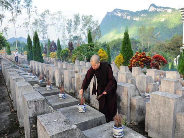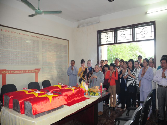 Cũng trong khuôn khổ của chuyến đi từ thiện lần này, Chư tôn đức và các Phật tử đã làm lễ dâng hương và cầu siêu tại nghĩa trang liệt sỹ thành phố Hà Giang và nghĩa trang liệt sỹ thuộc huyện Vị Xuyên, tỉnh Hà Giang, nơi quy tập hơn 1700 ngôi mộ của các anh hùng liệt sỹ trên cả nước đã hy sinh. Đồng thời Chư tôn thiền đức và các Phật tử đã làm lễ truy điệu, cầu siêu cho 5 hài cốt của 5 anh hùng liệt sỹ hy sinh tại chiến trường Campuchia vừa mới tìm thấy và được đưa về nghĩa trang liệt sỹ huyện Vị Xuyên, tỉnh Hà Giang để an nghỉ.
