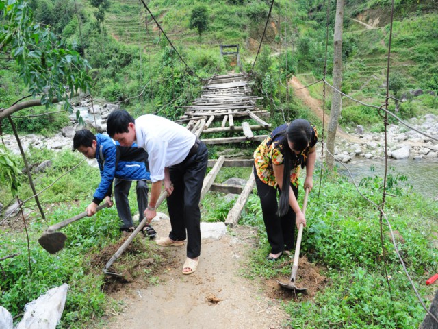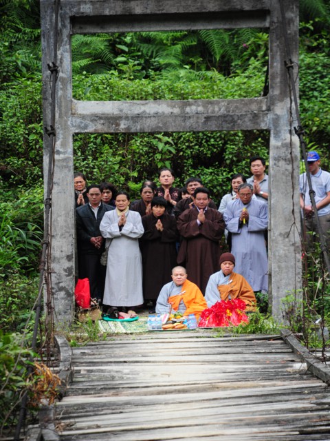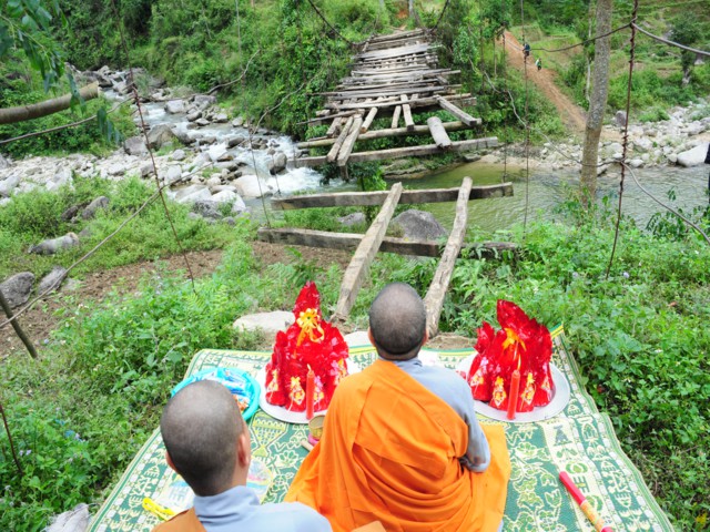 Theo kế hoạch của chuyến đi, Sáng ngày 9 tháng 11 năm 2014, Chư tôn đức Ni và các Phật tử đã làm lễ động thổ công trình sửa chữa, thi công lại 2 chiếc cầu treo đã bị mục và xuống cấp nghiêm trọng thuộc thôn Ma Lù Súng, xã Bản Nhùng và thôn 4 Nậm Ai, xã Nam Sơn, huyện Hoàng Su Phì, tỉnh Hà Giang do Phật tử Trần Thị Ánh Tuyết ( Hà Nội) kêu gọi các nhà hảo tâm cùng sửa chữa. Dự kiến tổng kinh phí sửa chữa 2 cây cầu này hết khoảng 150 triệu đồng.