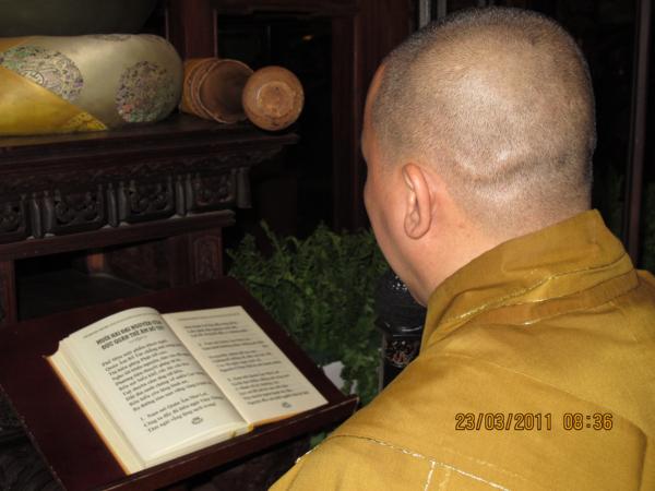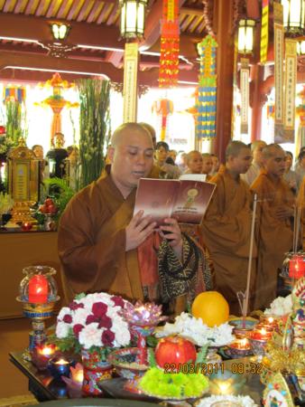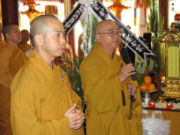 Trong lời tưởng niệm, thừa uỷ nhiệm của HT.Thích Trí Quảng. HT Thích Đạt Đạo đọc lời tưởng niệm và cùng hội chúng chú nguyện cầu siêu đến các nạn nhân bị tử nạn tại Nhật.