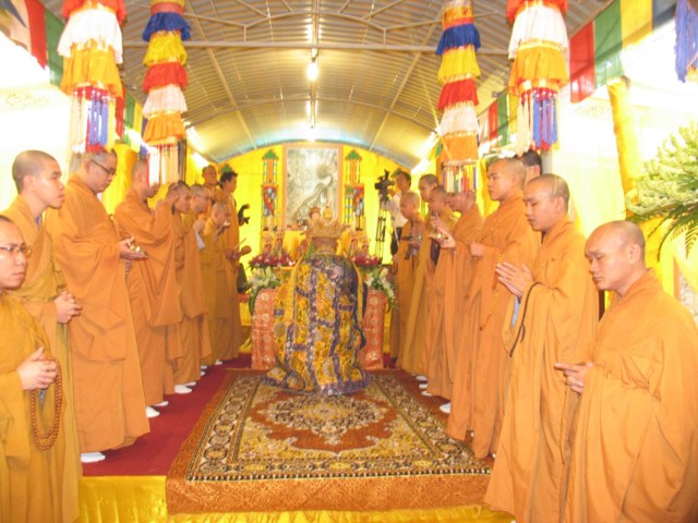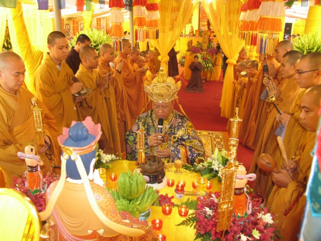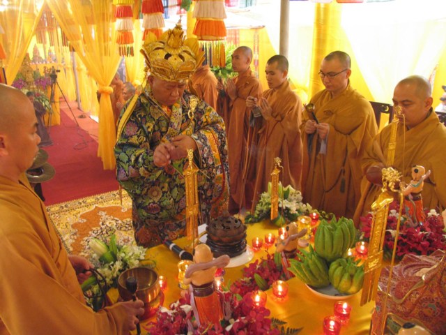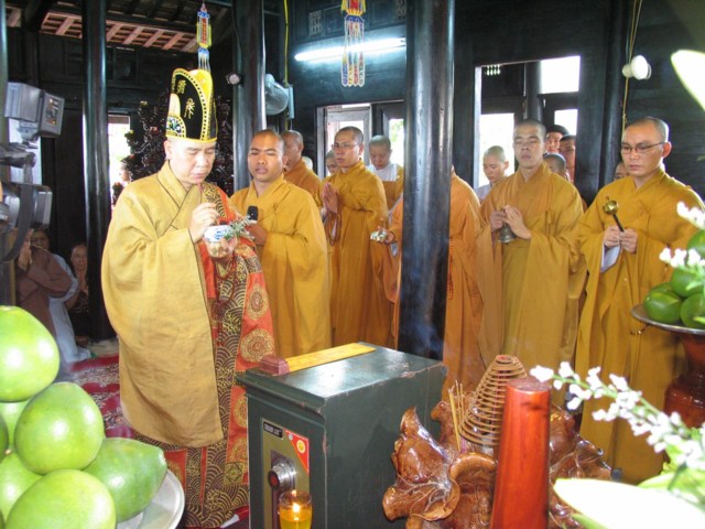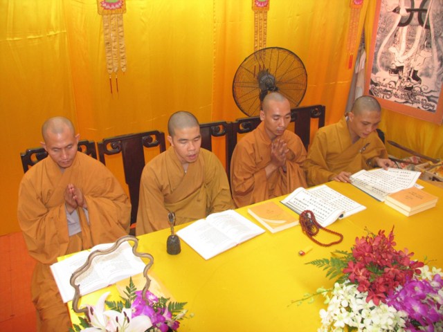 Khóa lễ diễn ra với nghi thức niêm đàn sái tịnh, bạch Phật khai kinh, khóa lễ cúng ngọ và lễ thượng phan chiêu linh dưới sự cử hành nghi thức của TT. Thích Quảng Chơn – Phó Ban Nghi Lễ Thành hội Phật giáo TPHCM chủ trì.