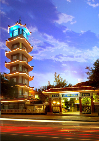 Sau tam quan có tháp chuông 7 tầng cao 32m được khởi công xây dựng ngày 15-12-1960, khánh thành ngày 23-12-1961. Đại hồng chung cân nặng 2 tấn, đường kính 1,2m, cao 1,6m, rót đồng tại phường Phường Đúc, Huế ngày 15-4-1961 (01-3 năm Tân Sửu) theo mẫu của đại hồng chung chùa Thiên Mụ, Huế.