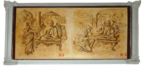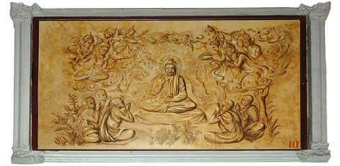Phật chuyển Pháp luân ở vườn Lộc Uyển, giảng Tứ Diệu Đế cho 5 vị đệ tử đầu tiên là 5 anh em Kiều Trần Như
