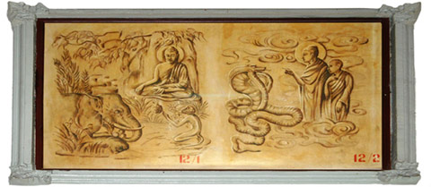 Các loài thú như voi, khỉ được cảm hóa thuần tánh dâng trái cây cúng dường đức Phật