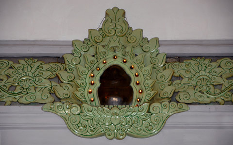 Đặc biệt, ở trên cao, ngay trước tượng Phật là nơi tôn thờ ngọc Xá Lợi Phật, đặt trong một bảo tháp nhỏ bằng bạc để trong một ô khám làm theo hình lá bồ đề. Viên ngọc này do ngài Narada Mahathera, tọa chủ chùa Vajirarama ở Srilanka dâng cúng cho Phật giáo Việt Nam.