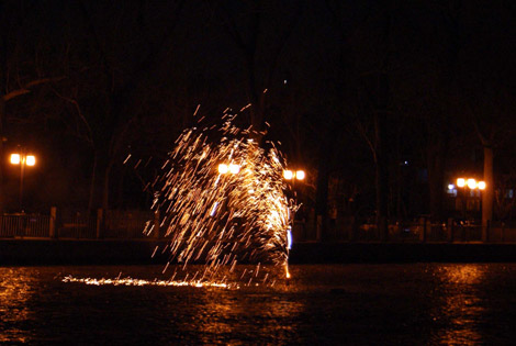 Một lọai pháo nổ trên mặt hồ đóng băng