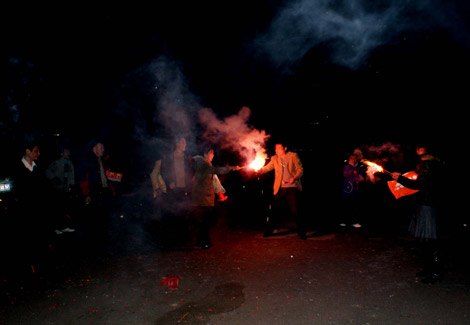 Trên các con đường người dân lái xe và dừng lại đột pháo