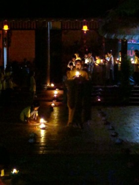 Các em tham gia nghi lễ thắp nến cầu nguyện cho quê hương. Nơi nào có ánh sáng nơi đó bóng đêm bị xua tan. Cũng vậy nơi nào có tình thương thì nơi đó mất đi sự đau khổ. Đẹp thay! Ngọn nến đã làm thay công việc của ngôn từ.