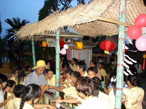 Hình ảnh Hội chợ quê em thật náo nhiệt tại sân chùa vào đêm cuối trước khi kết thúc khóa tu học