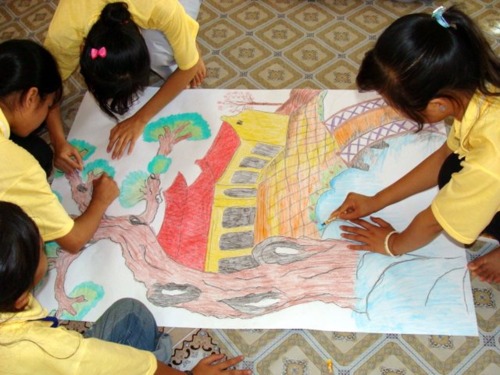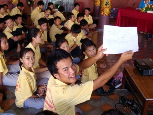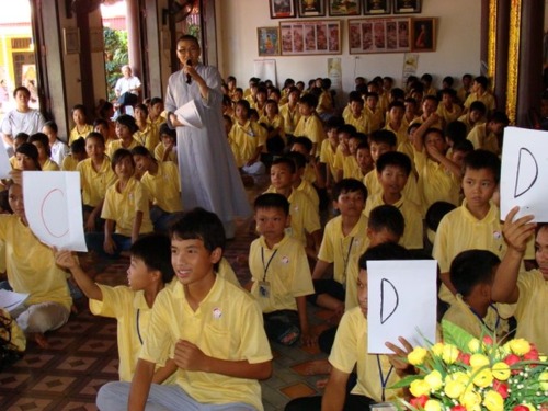 Các em tham gia chương trình thi đố vui Phật Pháp, vẻ tranh.