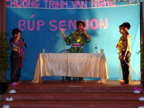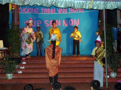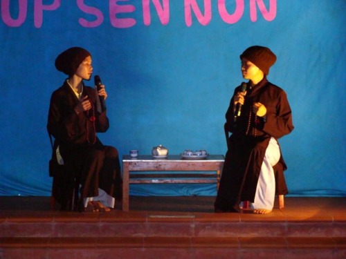 Đêm văn nghệ do các anh chị và các em trong khóa tu biểu diễn. Các tiết mục diễn kịch lịch sử, các em nhập vai hết mình, nghiêm túc. Học lịch sử qua kịch đã phần nào giúp các bạn trẻ “điều chỉnh” lại sự hiểu biết về lịch sử Việt Nam, qua đó nhắc nhở un đúc tinh thần yêu nước cho các em.