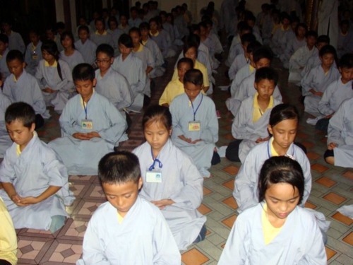 Hình ảnh các em lễ Phật, tụng kinh, ngồi thiền mỗi ngày